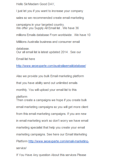 5) Continued spamming from “SEO gurus”: There’s not much more frustrating than the stream of SEO people guaranteeing rankings. Unfortunately, despite Google’s algorithm updates, and my predictions, I expect to see as many (or maybe more) solicitations in 2015. This may be in part to their desperation because they’re unable to actually generate results from their outdated tactics. The ironic thing is that it’s well known that content marketing (blogging) is crucial for organic visibility, yet many of these spammers lack basic understanding of the English language! It goes without saying that if you invest with these types of companies you pay for what you get. If you want to be taken seriously then invest with a serious marketing agency.